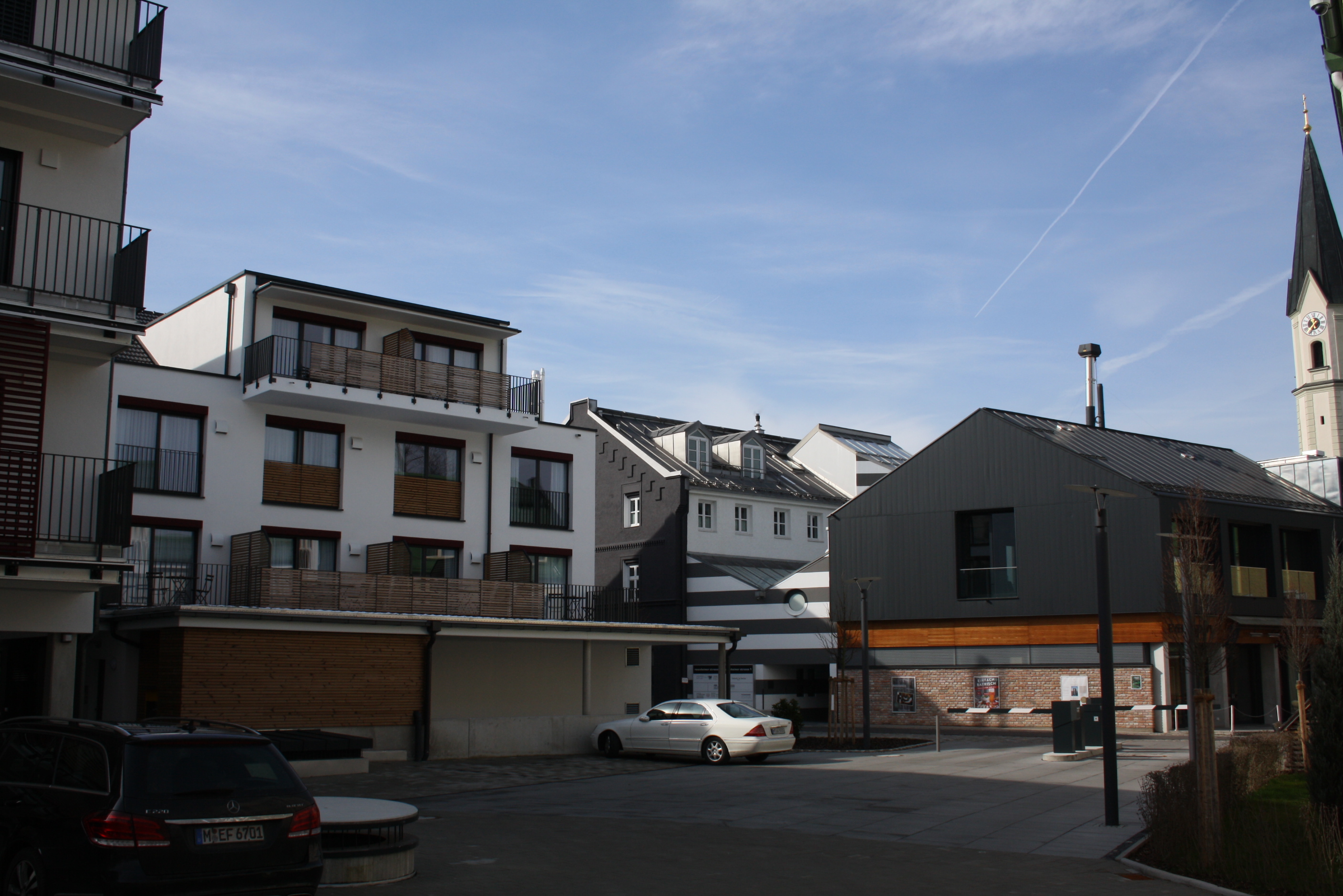 Spenglerarbeiten: - Dachdeckung mit Aluminium RIB ROOF 500, ca. 800m² - Dachentwässerung, Titanzink vorbewittert - Fassadenverkleidung mit Aluminium Panele, PREFA Flachdachabdichtung: - FPO Bahn, ca. 300m²