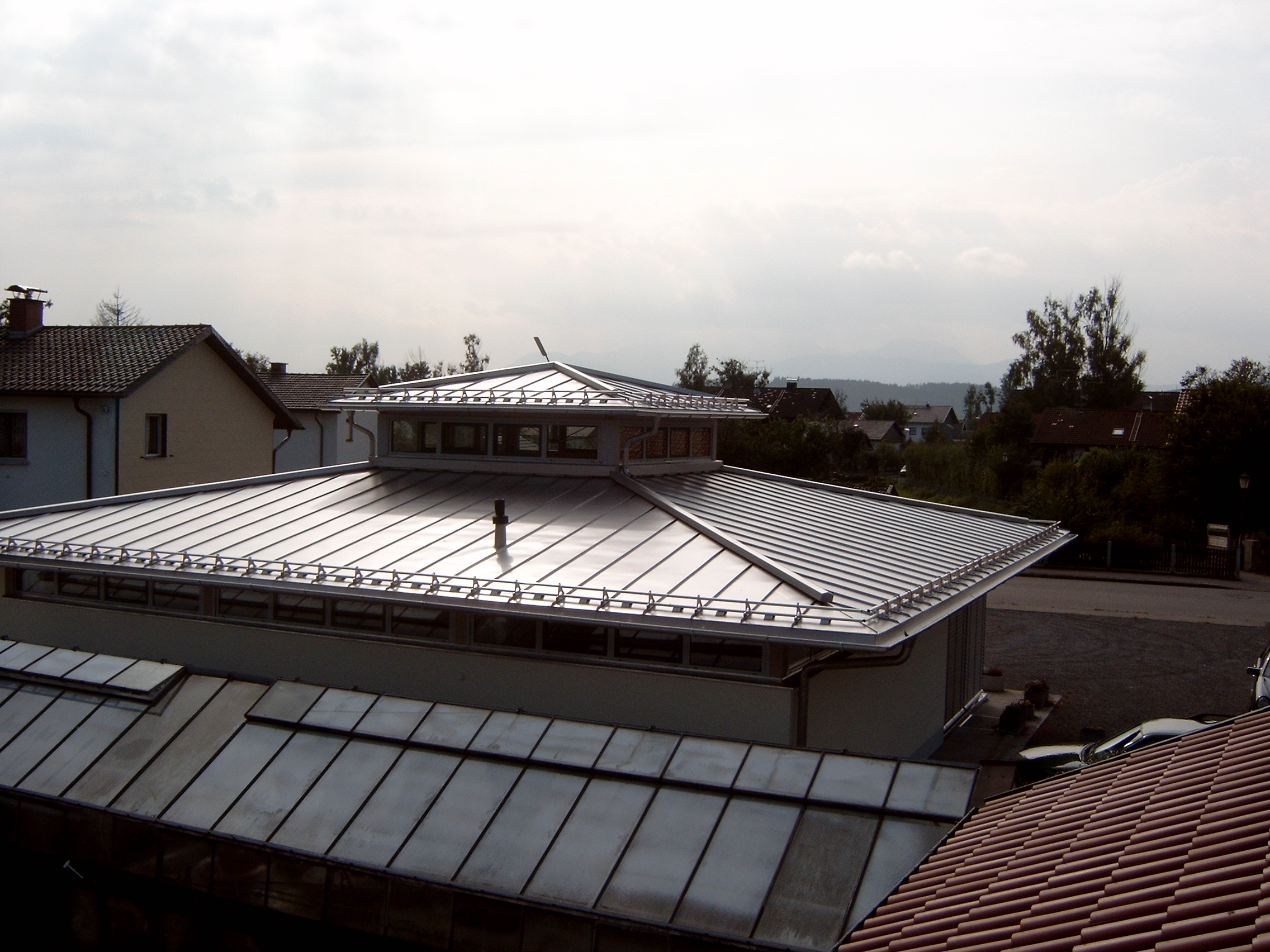 Spenglerarbeiten: - Walmdach, Dachdeckung in Uginox 0,5mm im Stehfalzsystem, Dachflächenfenstereinfassen - Rohrschneefang, Kaminkehrer Verkehrswege
